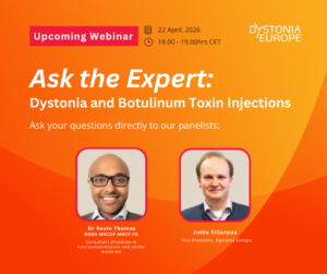 Društvo Bolnikov z Distonijo Slovenije Distonija je nevrološka motnja gibanja, ki prizadene različne dele telesa in povzroča nehoteno krčenje mišic. NOVICE Spletni seminar 22.4.2026 Vprašajte strokovnjaka: Spletni seminar o botulinu Tema: Distonija in injekcije botulinskega toksina Datum: Sreda, 22. april 2026Ura: 18.00–19.00Lokacija: Spletna platforma Več » 23/03/2026 VČLANI SE NISI SAM. PRIDRUŽI SE NAM! PRISTOPNA IZJAVA Življenje z distonijo prinaša mnoge izzive, ki jih najbolje razumejo tisti, ki z Več » 19/03/2026 Anketa o prehrani bolnikov z Distonijo To anketo sta ustvarila Katarzyna Smilowska in Daniel van Wamelen. Oba sva raziskovalca specializirana za motnje gibanja, vključno z distonijo. Več » 19/04/2023 3 dejstva o distoniji • Motnja možganov • Nehoteno krčenje mišic • Prizadene milijone ljudi po vsem svetu VEČ … POSLANSTVO društva Ozaveščamo strokovno in laično javnost, širimo informacije in spodbujamo raziskave o Distoniji.Društvo bolnikov z distonijo Slovenije / Slovenian Dystonia Society Več o društvu PARTNER ZLATI Sponzor DONATORJI